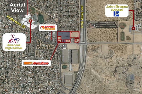 Great location on Joe Battle, Pellicano & Bob Hope Dr. Just a couple of minutes from Interstate-10 and 10 Minutes away from the Zaragoza International Border crossing.