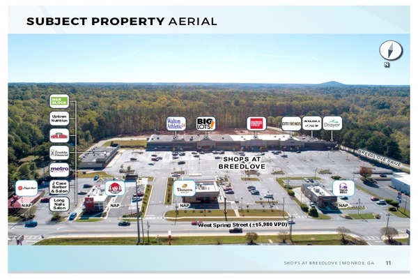 High traffic, multi tenant shopping center with national tenant exposure. This 2400 SF suite sits adjacent to tenants such as Big Lots, City Trends, Harbor Freight, T-Mobile/.Sprint and more! Servicing all of Walton County and the thriving city of Monroe, this center offers an excellent opportunity for exposure and expansion to a fast growing suburb of Atlanta!