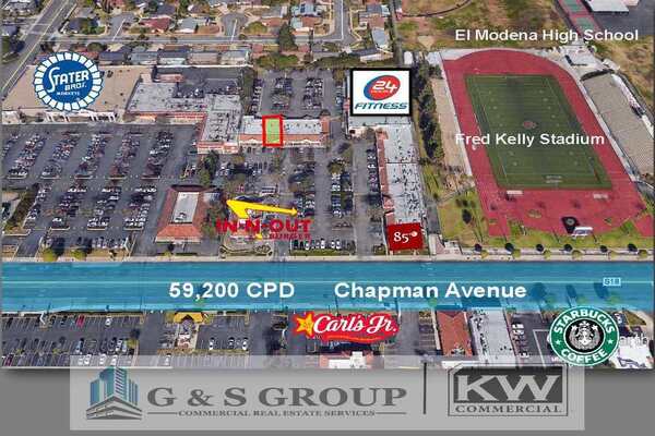 Saddleback Plaza is a very busy neighborhood shopping center located just west of El Modena High School in the city of Orange, CA. Inline shop space and restaurant space currently available. Available sizes are 1,020 SF, 2,040 SF and 2,400 SF. Center is highly trafficked and includes In N Out Burger, 24 Hour Fitness, Taco Mesa, 85 Degrees, H & R Block, Flame Broiler, Metro PCS, Hug Life and Stater Bros (NAP).