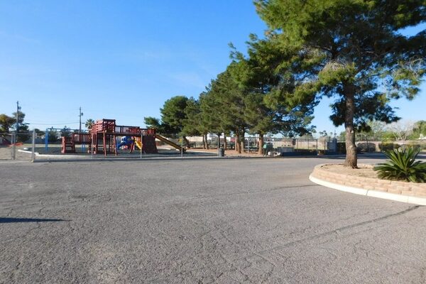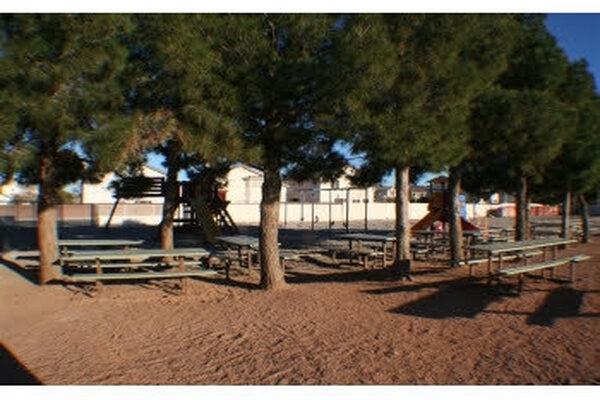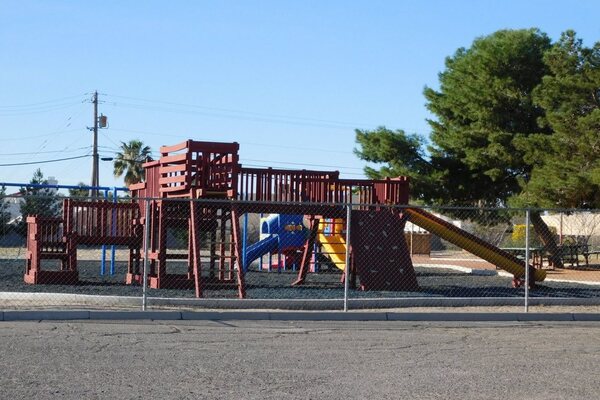 Large playground with outside seating area