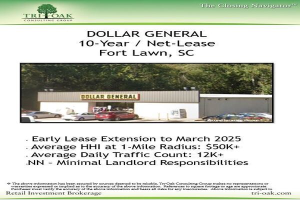 Net-Lease, Dollar General Property with a 10-Year Initial Lease Term that expires March 31, 2025. It is an 9,014 SF building on 1.00 acre located in Fort Lawn, SC. Limited landlord responsibilities and is corporately guaranteed by Dollar General Corporation.