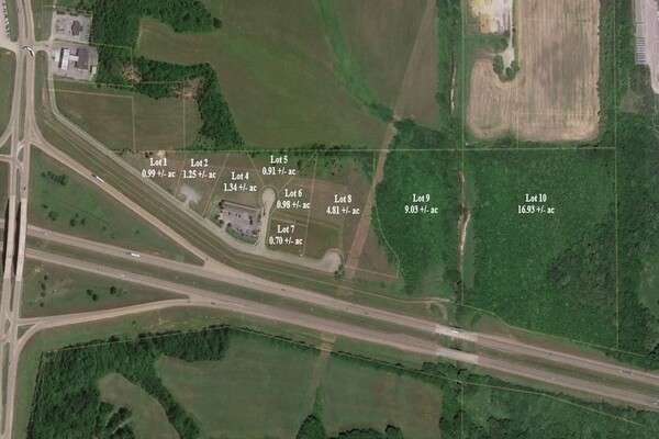 Just off of the I-22/I-69 intersection this great location offers great potential for a Fast Food Restaurant, Truck Stop, Office Warehouse, or Industrial use! Surrounded by other successful commercial businesses, this land is comprised of nine lots that total to roughly 36 acres with 10 acres developed and 26 acres undeveloped. A portion of this land is located in the flood zone but it is currently being submitted to be removed.